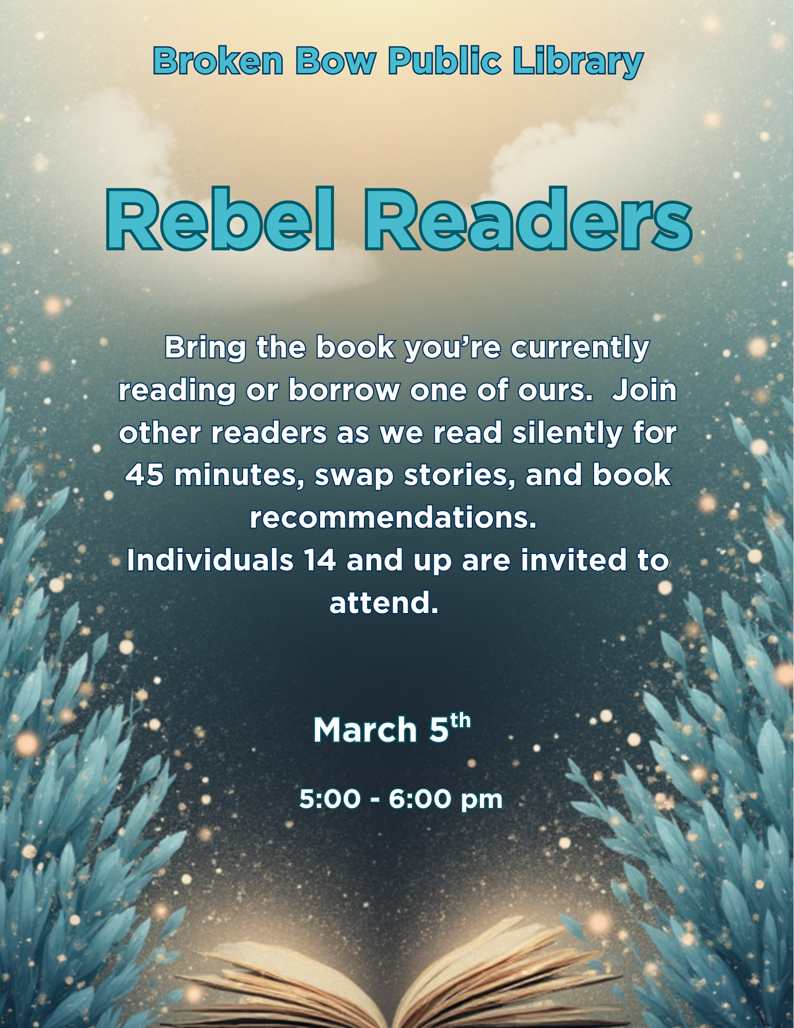 The Evening Book Group is reading A Calamity of Souls by David Baldacci. We have copies available at the desk. We will discuss the book on Monday, March 16th at 6:30 p.m. Call the library at 872-2927 for more information.
